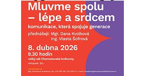 Ve středu 8. dubna od 9:30 hodin se v Chomutovské knihovně koná přednáška z cyklu A3V s názvem „Mluvme spolu – lépe a srdcem“. Program se zaměřuje na komunikaci, porozumění a vztahy. Přednášejí Mgr. Dana Kvolková a Ing. Vlasta Šofrová.